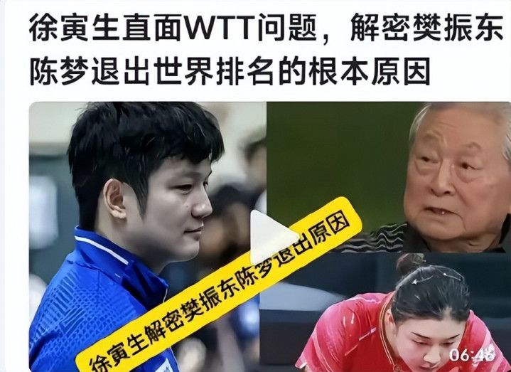 徐老在采访中提到了樊振东和陈梦这两位也曾退出天下排行的顶级选手,他击中要害地指出: