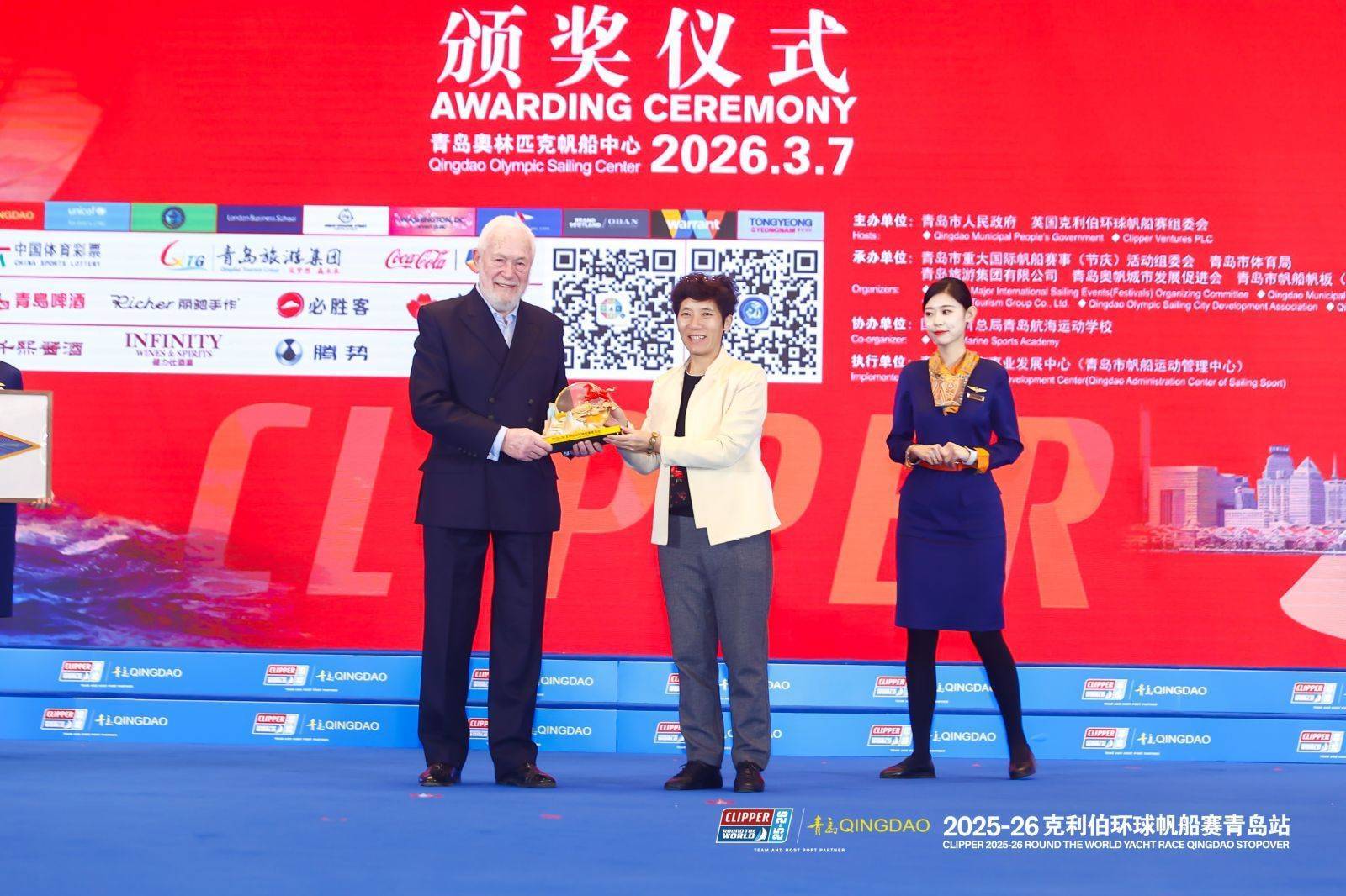 r3月7日晚,2025-26克利伯环球风帆赛青岛站受奖庆典在海外会议中心尚合厅举行。英国驻华大使魏磊,寰宇风帆猜想会主席李全海,克利伯环球风帆赛赛事独创东谈主、主席罗宾·诺克斯·约翰斯顿爵士,克利伯环球风帆赛赛事独创东谈主、首席引申官威廉·沃德勋士,克利伯风险投资公司总司理(引申董事)克里斯·拉什顿,克利伯环球风帆赛竞赛官戴尔·史小姐等海外嘉宾;山东省体育局局长乔云萍,山东省委外办副主任林海滨,北京奥运城市发展促进会副秘书长,北京奥运城市发展促进中心副主任夏季红等国内嘉宾;青岛市委副布告、市长任刚,青岛市委副布告张惠,青岛市东谈主大常委会副主任张建刚,青岛市政府副市长、青岛市紧要海外风帆赛事(节庆)步履组委会副主席赵胜村,青岛市政协副主席薄涛,青岛奥帆城市发展促进会会长孙立杰,青岛市委原常委、原副市长、青岛奥帆城市发展促进会巨匠委员会副主任委员臧爱民,青岛市政府秘书长李虎成等青岛市指点嘉宾出席并为获奖船队受奖。国内城市嘉宾、组委会成员单元指点、2025-26克利伯环球风帆赛青岛站举座船员、社会各界代表以及调解伙伴代表投入受奖庆典。